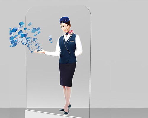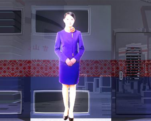 虚拟迎宾是全息投影中的一种,通过投影方式虚拟出逼真的人物形象,并能产生互动效果,当人经过时能做出反应,令光临者惊奇不已。虚拟迎宾绚丽多彩的播放效果、栩栩如生的互动画面,适合多环境播放。 它可以让企业、大型机构、各类运营商或者连锁式机构基于单个终端或网络构建一个可以发布基于视频、图片、Flash动画等多种媒体信息的三维互动触控软件平台,为用户提供高质量的三维触控互动体验。