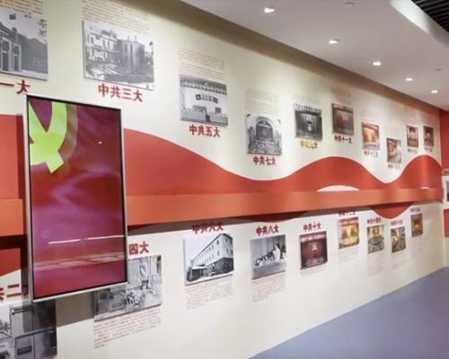 党建互动滑轨屏,多媒体行业称为滑轨屏幕,又称“滑轨电视”。是通过移动屏幕到指定的点位,预览指定内容,可以是宣传片、图文或三维影像等,它使想要表达的内容更多,更深动,是图文喷绘墙的延伸版本。