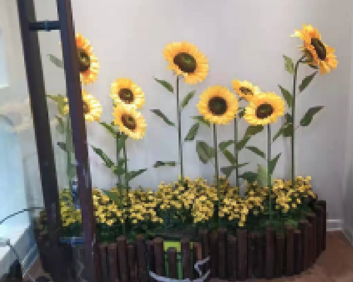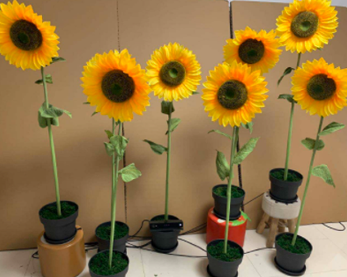 人体跟踪设备是向日葵象征着阳光正能量。这是一款互动式的向日葵装置,利用运动跟踪传感器技术,当人们经过他,这些向日葵装置便会追随任何从前面路过的人。